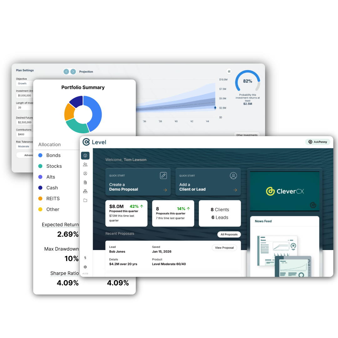 Level proposal generation software helps asset and wealth managers combine portfolio construction with financial planning, enabling firms to scale distribution, drive AUM growth, and create digital cohesion across your enterprise.